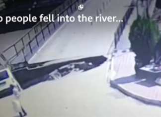 Дел од мост во турскиот град Терме се сруши во надојдена река по обилните врнежи од дожд, влечејќи со себе двајца пешаци и автомобил.