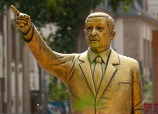 (Фото) Златна статуа на претседателот Ердоган, предизвика негодување кај жителите на Германскиот град Визбаден