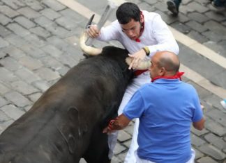 Томас Белзунеги, портпаролка на болницата во Навара, изјавил дека шест лица имале модринки откако биле вовлечени од бикови...