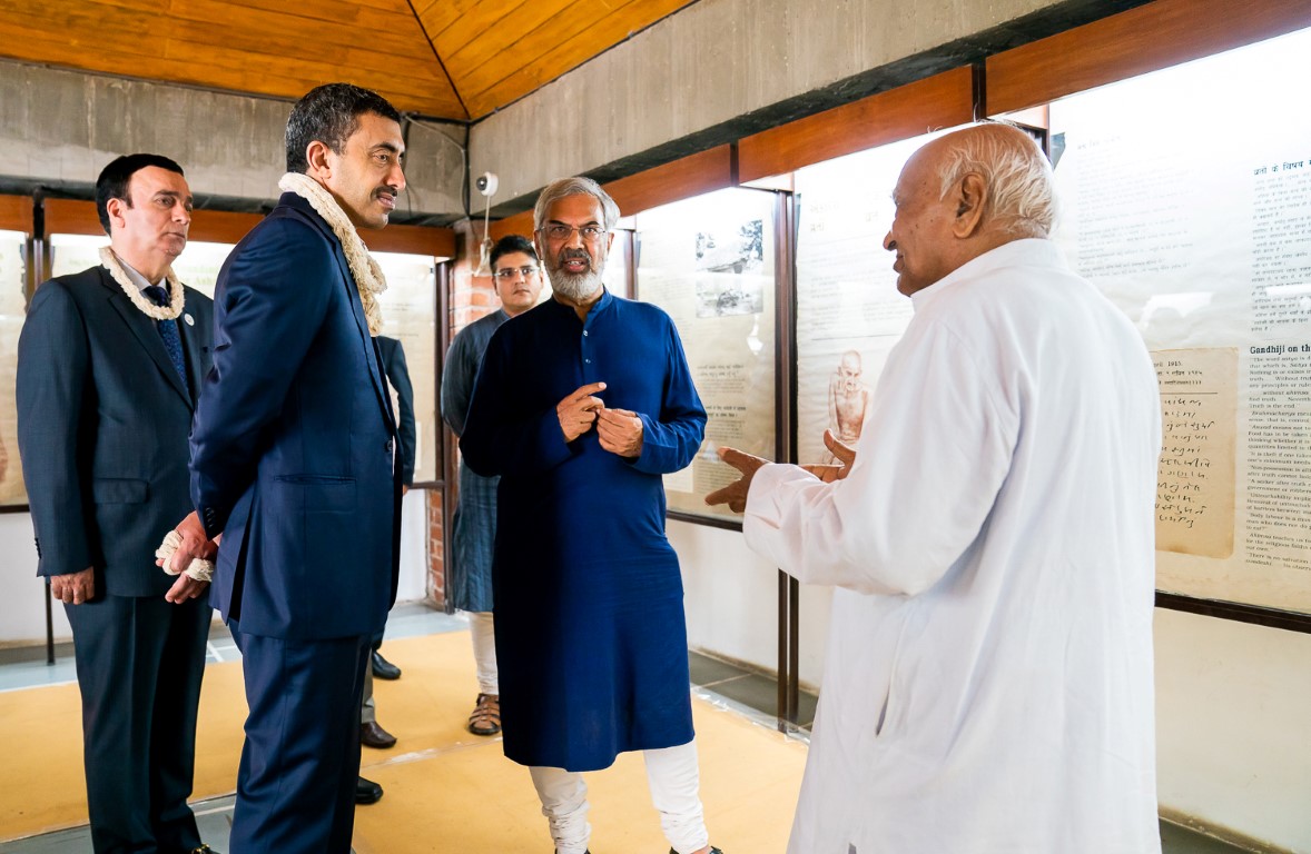 АХМЕДАБАД, 27 јуни, 2018 година (ВАМ) – Н.Е. Шеик Абдула бин Зајед Ал Нахјан, министер за надворешни работи и меѓународна соработка на ОАЕ, го посети Ашрам Ганди во Сабармати, Индија, резиденцијата на Махатма Ганди во Ахмедабад, како дел од неговата официјална посета на Индија.