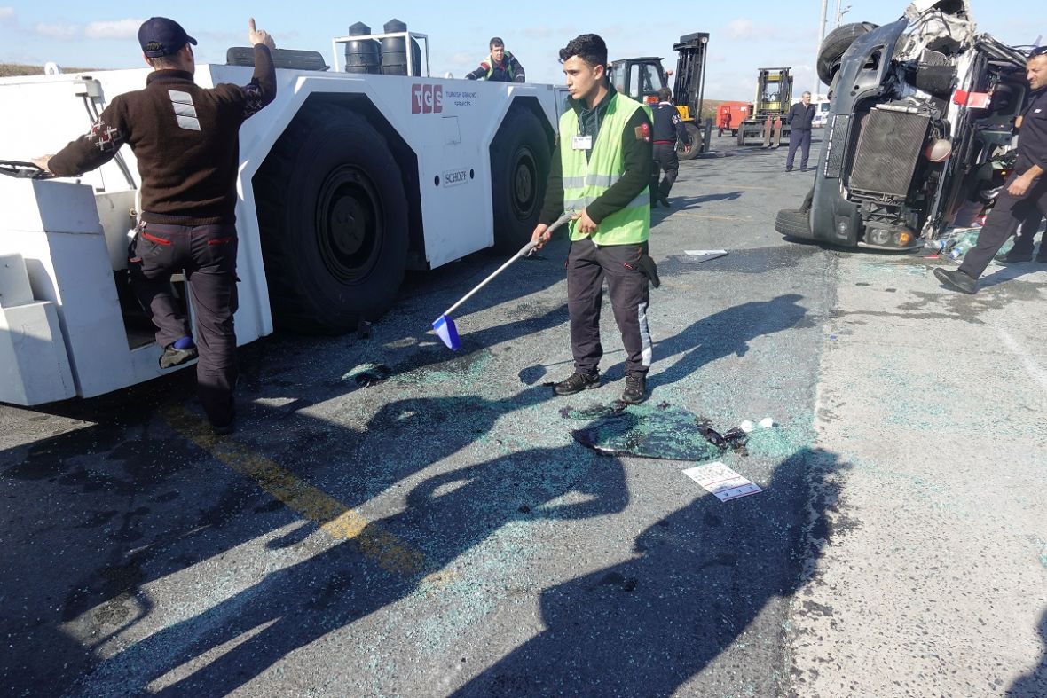 До несреќата дошло при судир на возило кое превезувало багаж до авионот и минубус кој превезувал работници на компанијата задолжена за чистењето на комплексот на аеродромот.