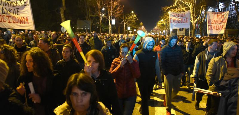 Демонстрантите на Плоштадот на независноста извикуваа „Застанете со нас, оваа влада паѓа“, „Долу диктатор“ и слично. Тие бараат „ослободување на заробените институции“, како и оставки на претседателот Мило Ѓукановиќ, премиерот Душко Марковиќ, челниците на правосудството, меѓу кои и Обвинителството и раководните луѓе во Радио-телевизија Црна Гора.