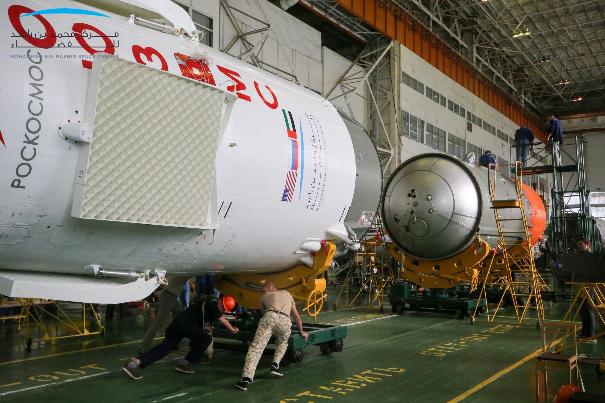 Ракетата Сојуз ФГ денес се пофали со знамето на Обединетите Арапски Емирати и логото на вселенскиот центар Мохамед бин Рашид во подготовките за мисијата на 25 септември.