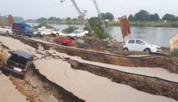 Фотографиите кои кружат на социјалните медиуми покажуваат огромни пукнатини на магистралниот пат во областа и делумно уништени домови.