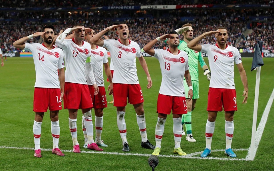 Турците после постигнатиот гол заминаа кај навивачите и (салутираа) поздравија како војници, со што ги поздравија турските сили што се борат против терористите на ПКК / ПДК-ПКРИ, како дел од операцијата Извор на мирот во северна Сирија.