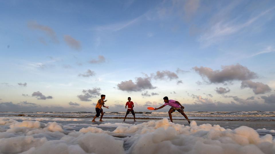 Предупредувањето од лекарите и градските службеници очигледно не дојде до стотици семејства кои, ја влегоа во најголемата плажа на градот во Индија, дозволувајќи им на децата среќно да скокаат и да играат во пена полна со токсични елементи.