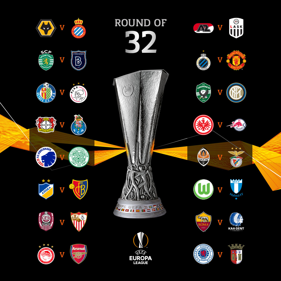 Меѓу поатрактивните двојки од оваа фаза во второто по ранг европско натпреварување, е и дуелот меѓу Бриж и Манчестер Јунајтед, но и дуелите на два тима кои испаднаа од Лигата на шампионите, Шахтјор и Бенфика.