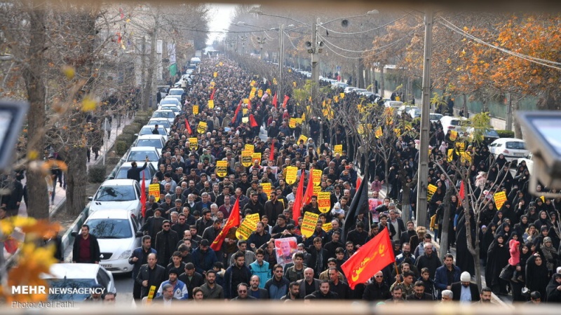 Стотици илјади Иранци со различно политичко и идеолошко потекло излегоа на улиците за да ја искажат својата тага за атентатот врз командантот на Револуционерната гарда на одредот на елитниот Кудс од Иран, од страна на американските воени сили во петокот во ирачката престолнина Багдад.