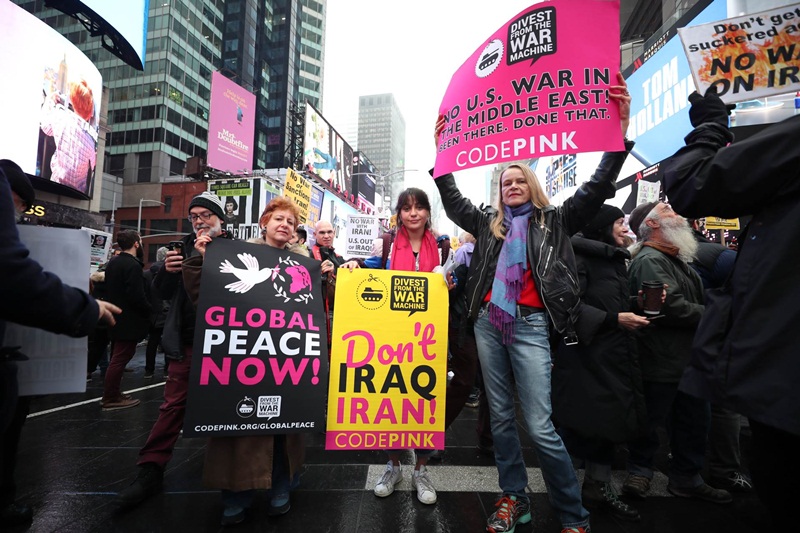 На митингот пред Белата куќа, кој го организираа повеќе здруженија и антивоени движења, присуствуваа неколку стотици кои ја повикаа администрацијата на американскиот претседатеДоналд Трамп да ги повлече своите сили од Ирак и да не влезе во војната со Иран.