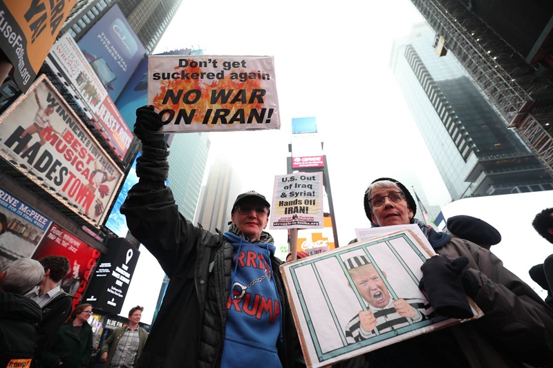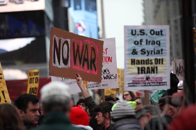 Собраните носеа транспаренти на кои пишуваше „Не за војна и санкции против Иран“, „Сакаме мир со Иран“ и „Преговори со Техеран“.