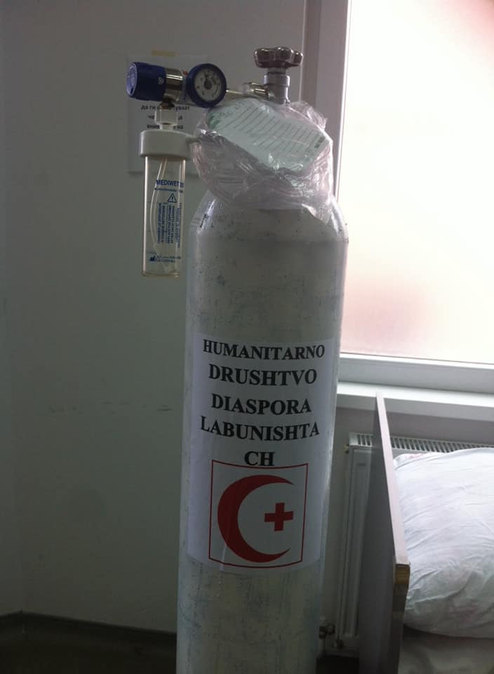 Хуманитарното здружение “Дијаспора-ЦХ” од Лабуништа со седиште во Швајцарија, денес донира медицинска опрема-(40) боци со кислород со пратечка апаратура, боците се стационирани во новиот објект во амбуланта во Лабуништа.