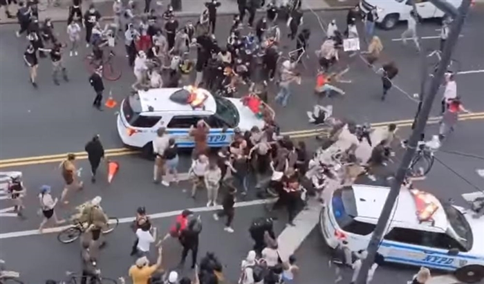 Шокантно видео стигна од Бруклин на кое може да се види како две полициски возила прегазуваат демонстранти, кои претходно сакале да ги нападнат.