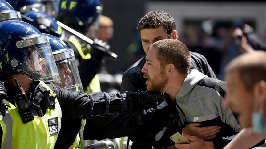 ЛОНДОН (АА) – Екстремнитe десничари кои протестираа во Лондон, главниот град на Велика Британија, за заштита на статуите, ја нападнаа полицијата, пренесува Агенција Анадолија (АА).