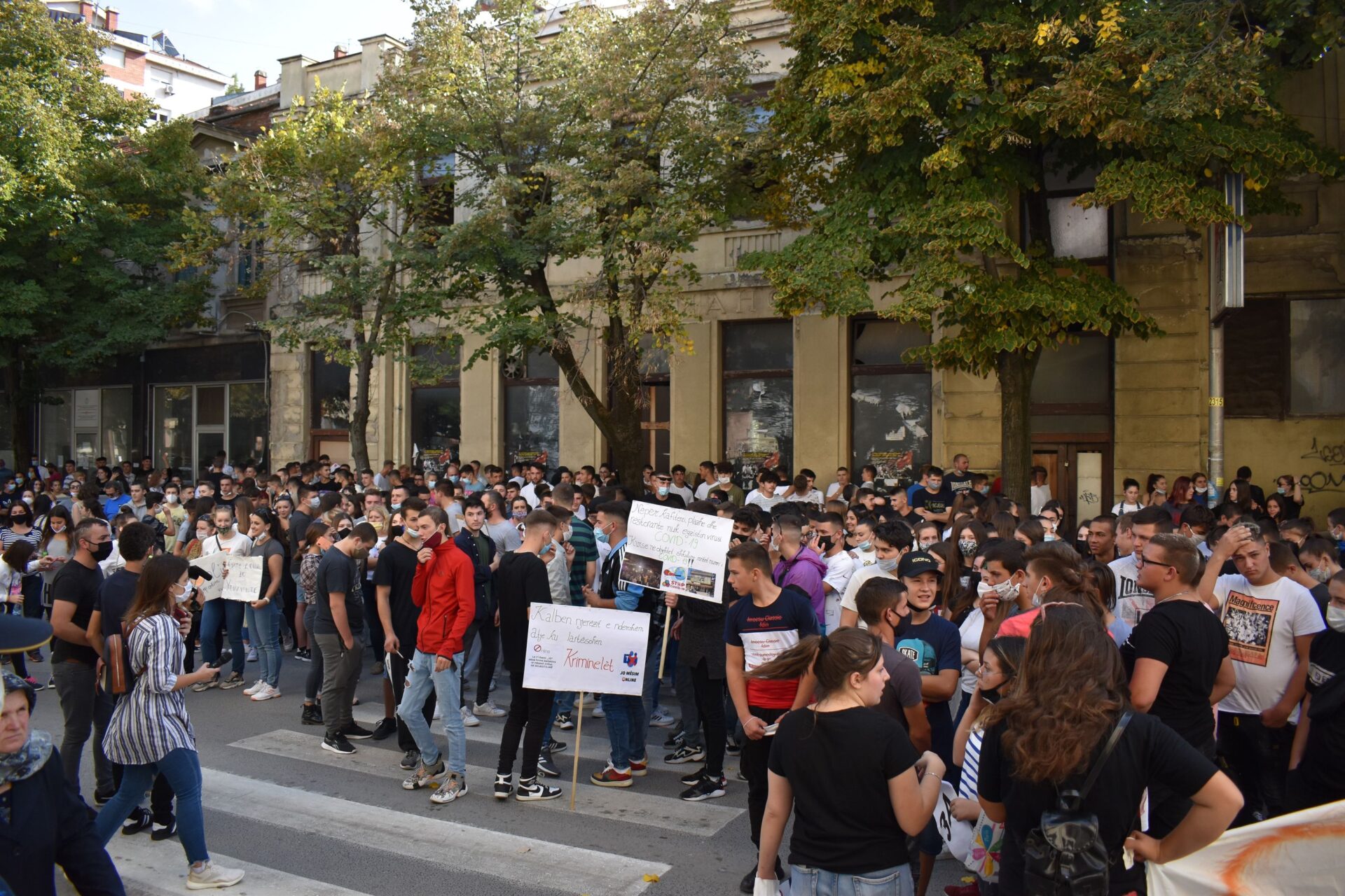 – Се собравме со цел стоп на онлајн наставата. Како прво, не можеме сите да си го овозможиме овој наставен процес, затоа што не сме сите во финансиска можност. Најубавите години, детството, дружбата, запознавањето со нови пријателства, насмевките во училишните клупи, се ни е одземено. Мислите само на себе си, само економијата да се подобри бидејќи сте со долгови во врат, немојте со нас децата тоа да го покривате. Се пуштивте, ноќни клубови, кафулиња, спортси настани, концерти, а школо не. Не сме стоки, разбираме што се случува. Од Ковид-19 според вас не може да се зарази во сите тие кафулиња и ноќни клубови каде што народот е еден до друг и милиметар не ги дели, а во школо тоа може? Ако веќе сте решени за онлајн настава зошто не обезбедите на сите лап топ и интернет? Што мислите ние имаме средства? Нашите родители не се милионери и бизнисмени. Што да кажеме за практична настава? Немаме обезбедено превоз, сами се снаоѓаме, рече организаторот на протестот Дамјан Петрушевски.