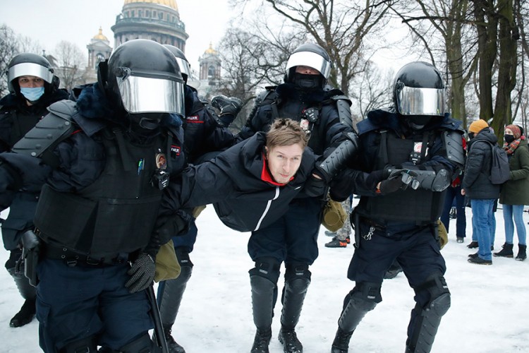 Како пренесува Ројтерс, полицијата низ Русија уапсила повеќе од 350 лица низ, додека растурила неколку митинзи забранети од властите. . организирана низ целата земја на покана на приврзаниците на опозицискиот лидер Алексеј Навални кои побараат негово ослободување од затвор. Од Москва до Владивосток, приврзаниците на познатиот антикорупционер, за кој се веруваше дека е затруен летово, објавија покани за собири во 65 руски градови. Во Москва, во пресрет на попладневниот собир на плоштадот Пушкин, полицијата, целосно опремена за сузбивање на демонстрации, масовно уапсила луѓе кои се чинеше дека ќе протестираат.
