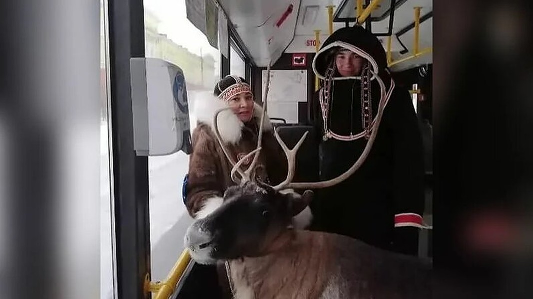 Во рускиот град Норилск, една жена е снимена како во автобус се вози со нејзиниот елен, бидејќи, како што објаснила, и тие животни се уморуваат.