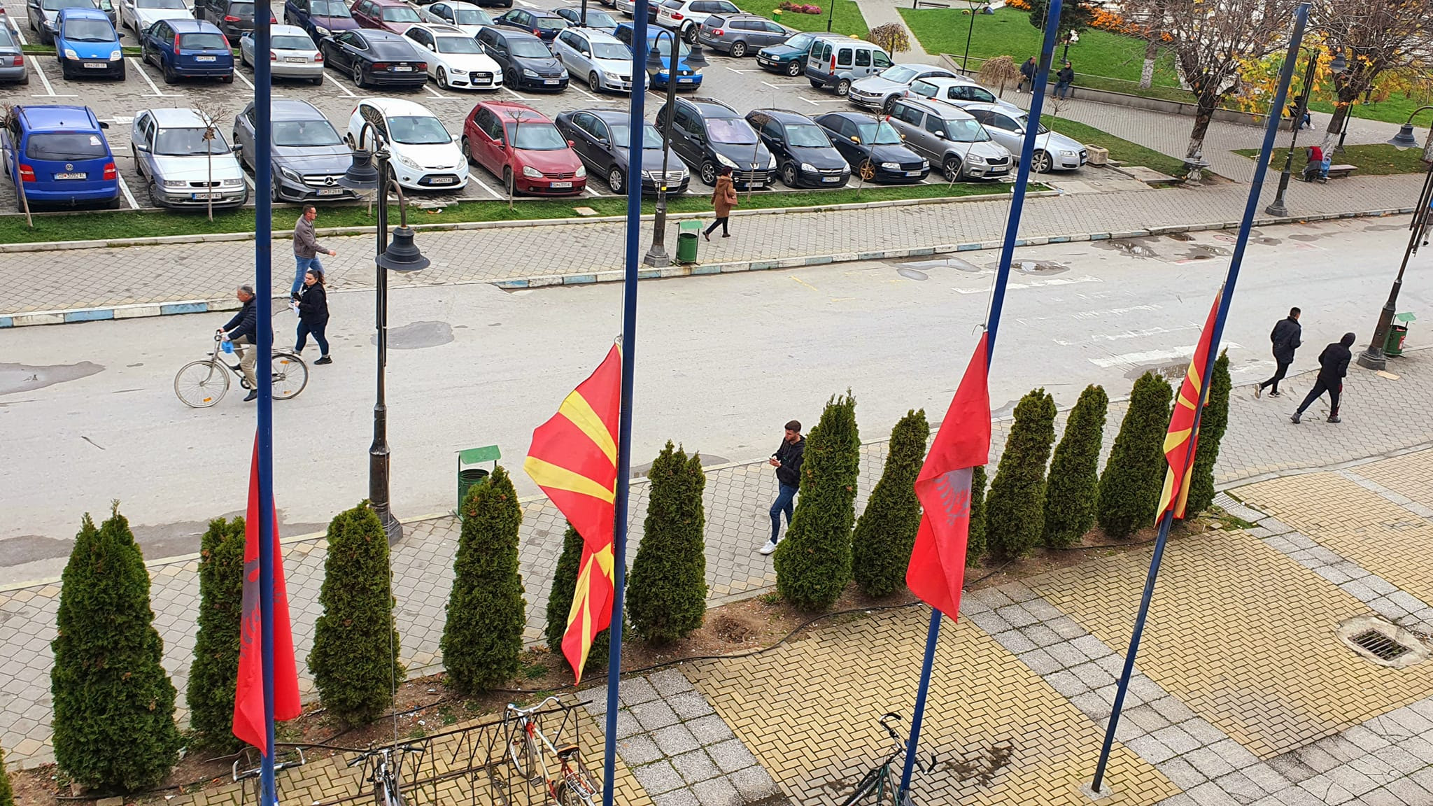 Општина Струга ги спушти знамињата на половина копја во знак на почит кон жртвите од трагичната сообраќајна несреќа во Бугарија, во која животите ги загубија 46 македонски државјани.
