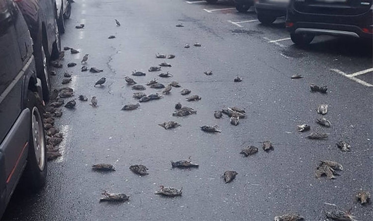 На улица во градот Ферол, во северозападна Шпанија, се пронајдени преку 200 мртви птици. Националните медиуми соопштија дека птиците „паѓале како дожд“ пред болницата.