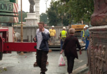 Пожарникарите се обидуваат да го изгаснат пожарот, додека спасувачките екипи напорно работат на отстранување на остатоците.