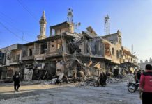 По ракетниот напад, зградата, која се наоѓа на главната улица, е разурната.