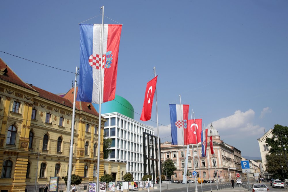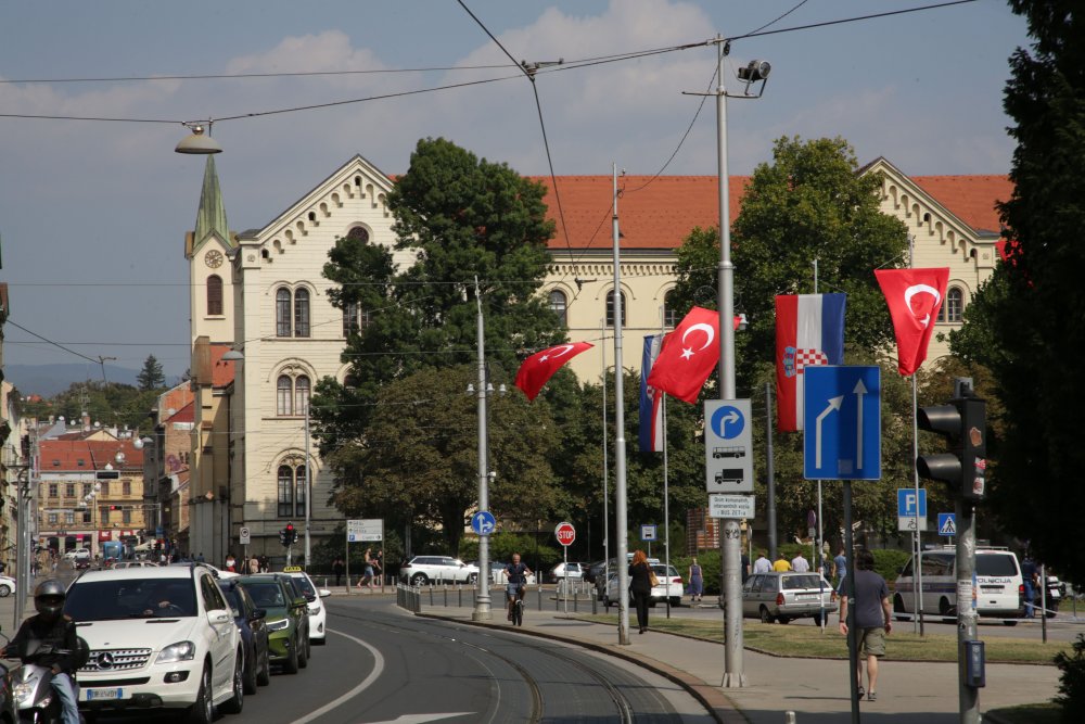 Во центарот на Загреб покрај хрватските знамиња поставени се знамињата на Република Турција, а се преземаат интензивни безбедносни мерки во пресрет на утрешната посета на претседателот на Турција, Реџеп Таип Ердоган. На Трг Република Хрватска, пред зградата на Хрватскиот народен театар (ХНК), беа закачени знамињата на Република Турција и на Република Хрватска во пресрет на утрешната посета на турскиот претседател на Загреб и Сисак.